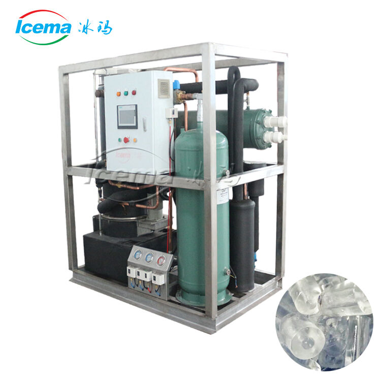 La máquina de tubo ICEMA se divide en máquina de hielo en tubo pequeña (1-5 toneladas) y grande (más de 10 toneladas) de máquina de hielo en tubo grande.Producto terminado¿Qué es el hielo en tubo y cuáles son sus ventajas?El hielo en tubo tiene forma cilíndrica con un núcleo hueco y no produce polvo. En comparación con el hielo en escamas, el hielo en tubo tiene un tiempo de fusión más prolongado, por lo que es más adecuado para enfriar cosas en entornos no aislados. Además, es sólido y menos propenso a generar grumos de hielo, lo que lo hace adecuado para entregas a larga distancia.¿Por qué elegir la máquina de hielo en tubo ICEMA?
